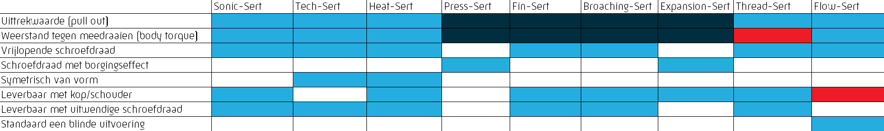 Het gebruik van inserts biedt verschillende voordelen. Allereerst zorgt het voor een betere belastbaarheid, doordat de insert het schroefdraad in het materiaal versterkt en voorkomt dat de verbinding snel beschadigd raakt. Daarnaast dragen ze bij aan een langere levensduur van het product, omdat de verbindingen duurzamer en betrouwbaarder zijn dan wanneer de schroefdraad rechtstreeks in het basismateriaal wordt aangebracht. Hierdoor kunnen bouten of schroeven meerdere keren worden los- en vastgedraaid zonder dat het materiaal slijt of verslechtert.