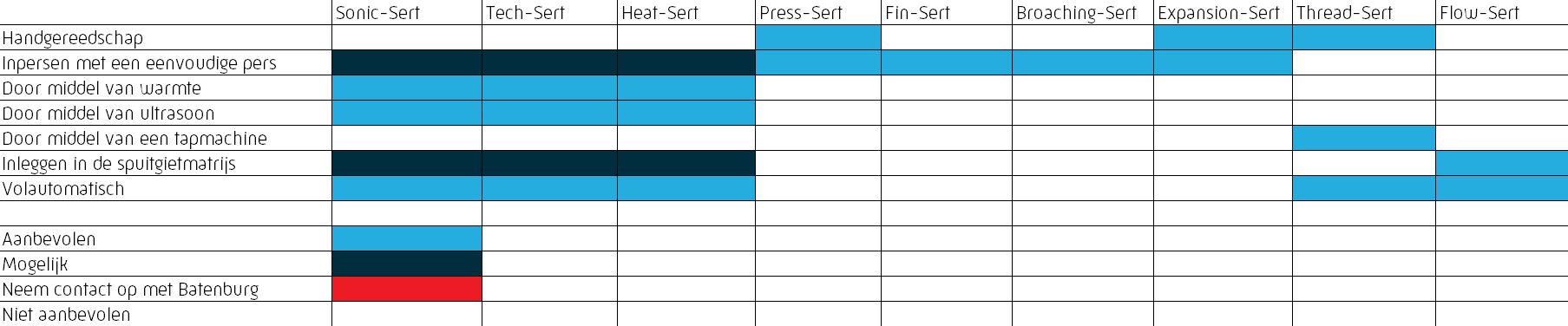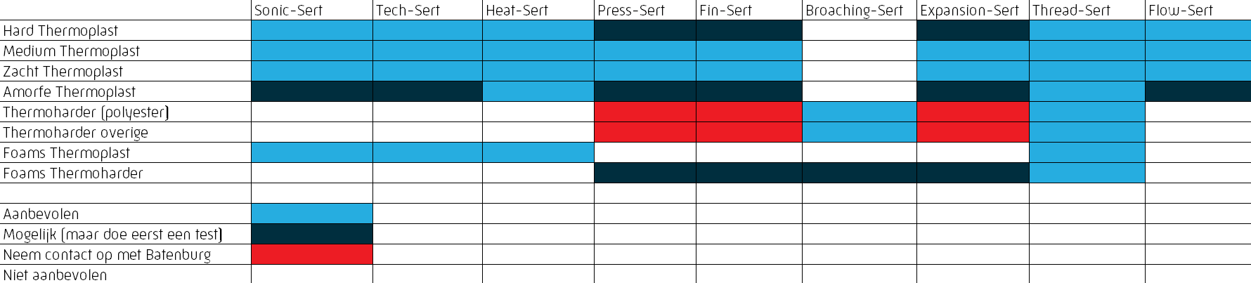 Het gebruik van inserts biedt verschillende voordelen. Allereerst zorgt het voor een betere belastbaarheid, doordat de insert het schroefdraad in het materiaal versterkt en voorkomt dat de verbinding snel beschadigd raakt. Daarnaast dragen ze bij aan een langere levensduur van het product, omdat de verbindingen duurzamer en betrouwbaarder zijn dan wanneer de schroefdraad rechtstreeks in het basismateriaal wordt aangebracht. Hierdoor kunnen bouten of schroeven meerdere keren worden los- en vastgedraaid zonder dat het materiaal slijt of verslechtert.